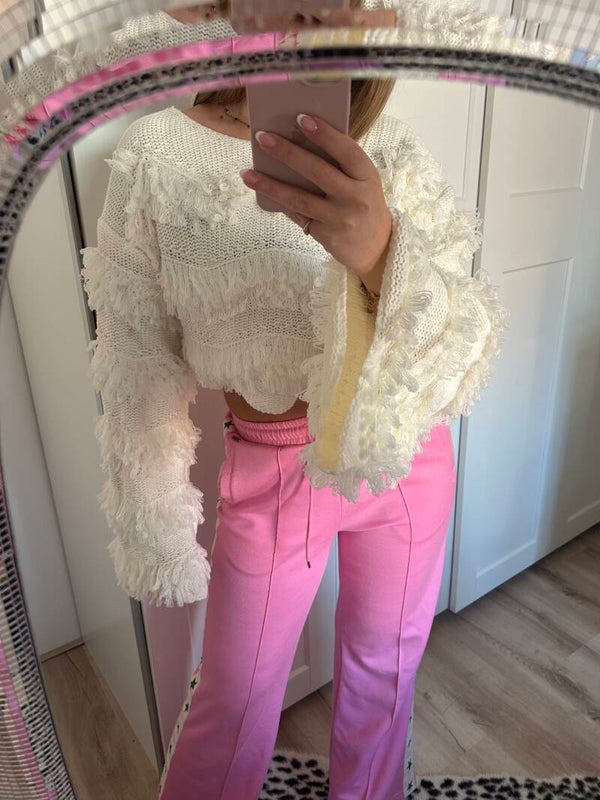 Onze favoriet! Prachtige trui met ruffles en wijde mouwtjes.