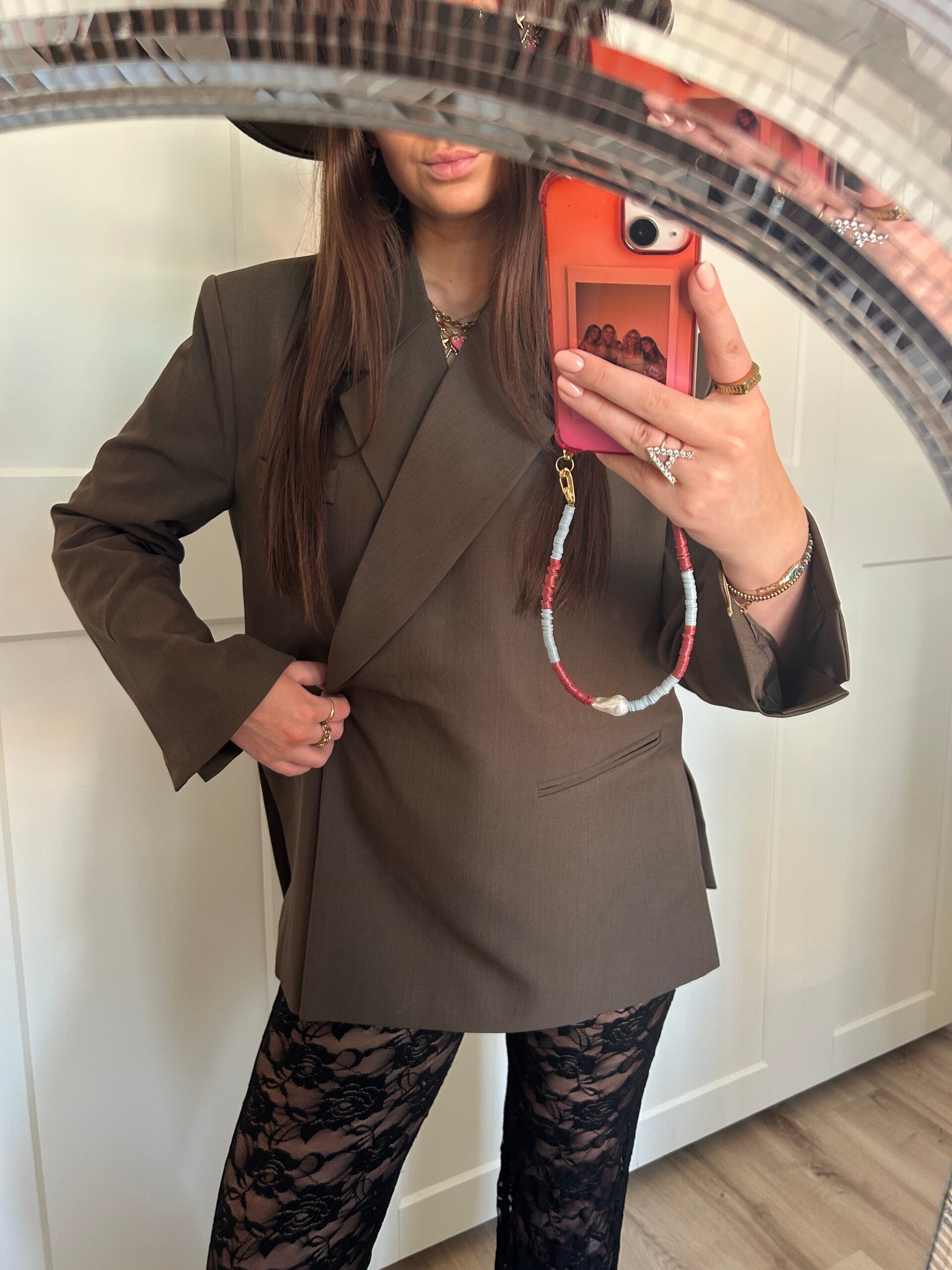 Blazer in het bruin. De blazer heeft een oversized/ boyfriend fit, heeft schoudervullingen, een drukknoop en is gevoerd!