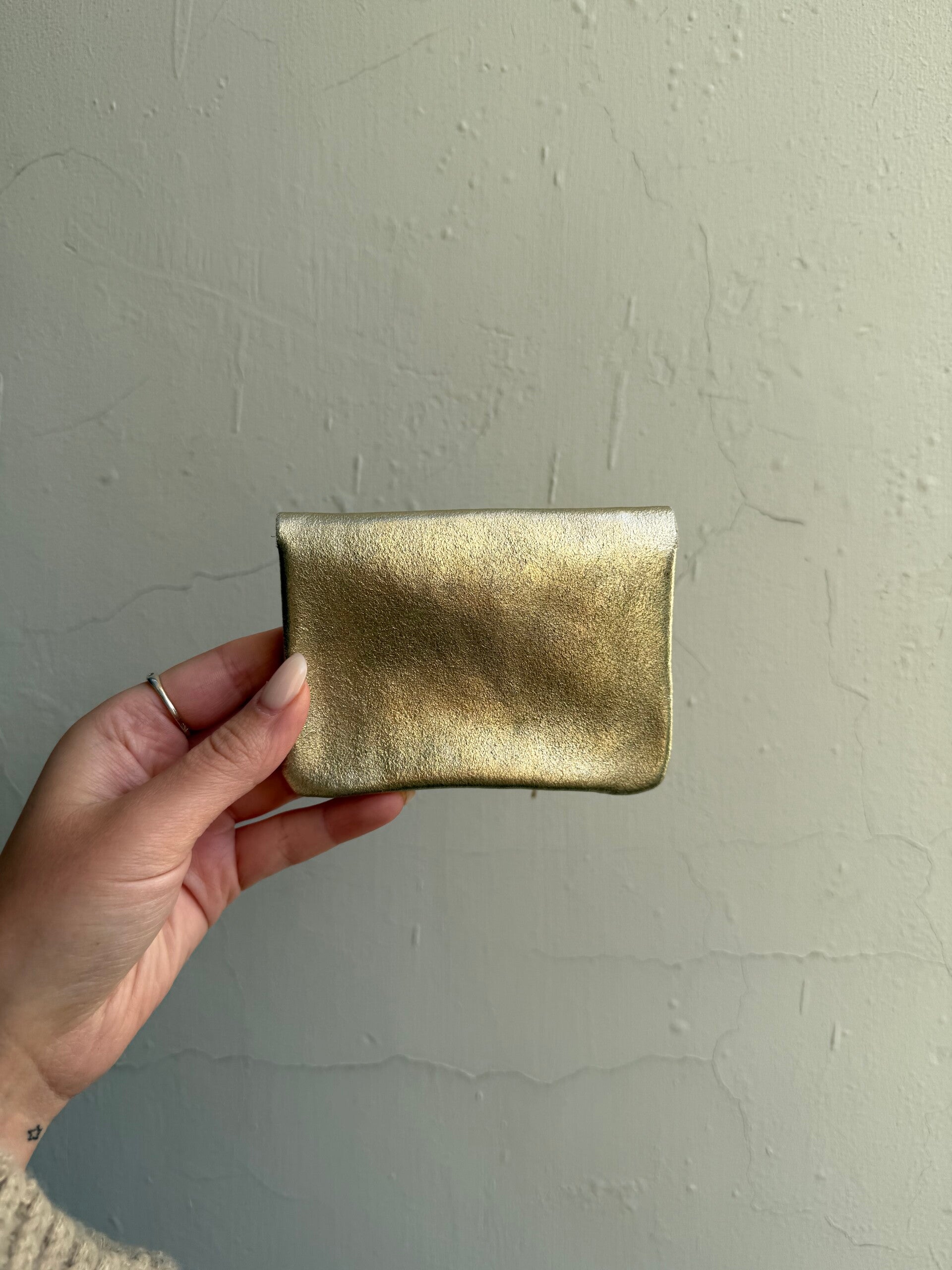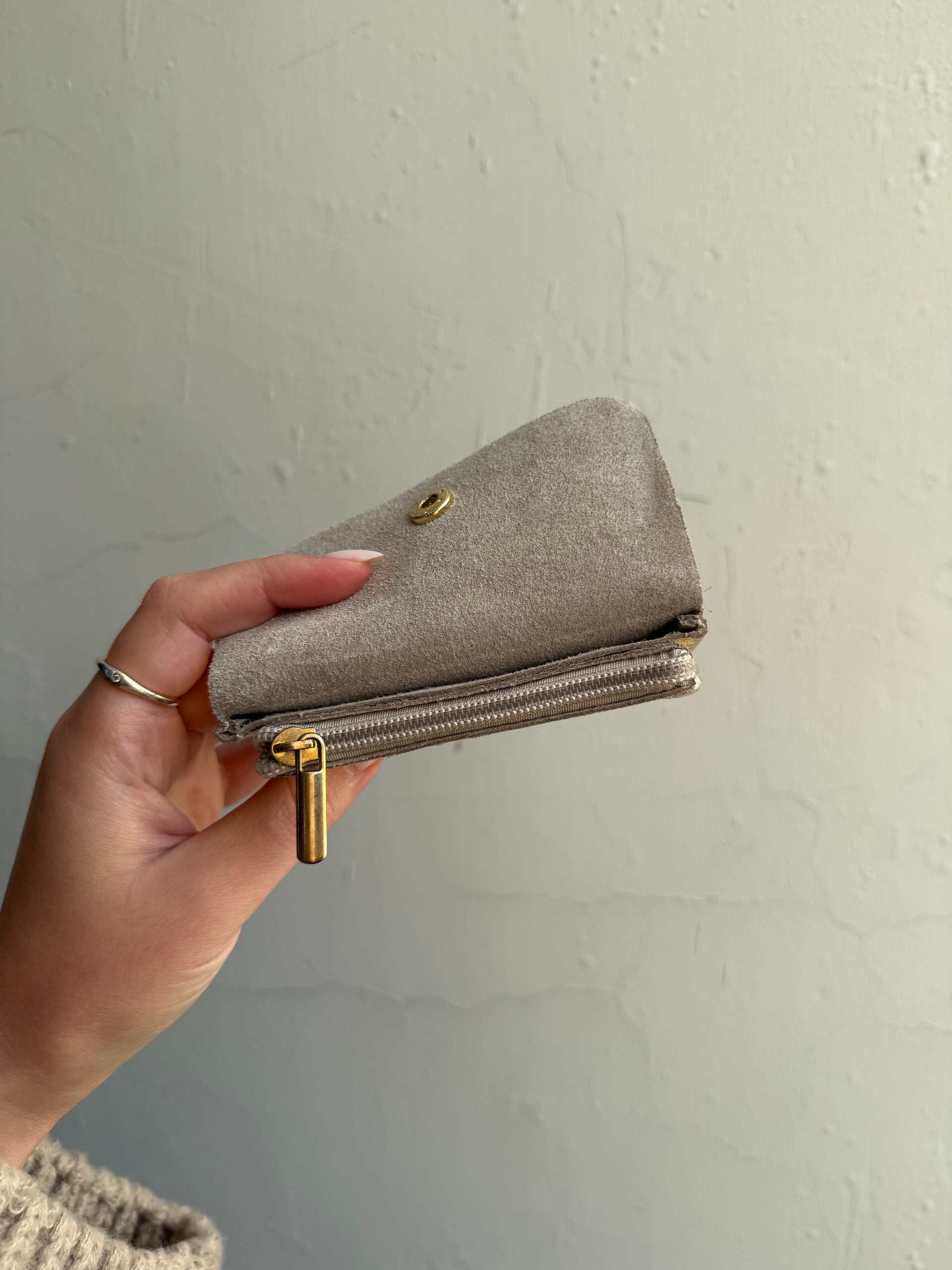 Mini lederen metallic portemonnee met een vakje voor brief geld en een vakje met rits.