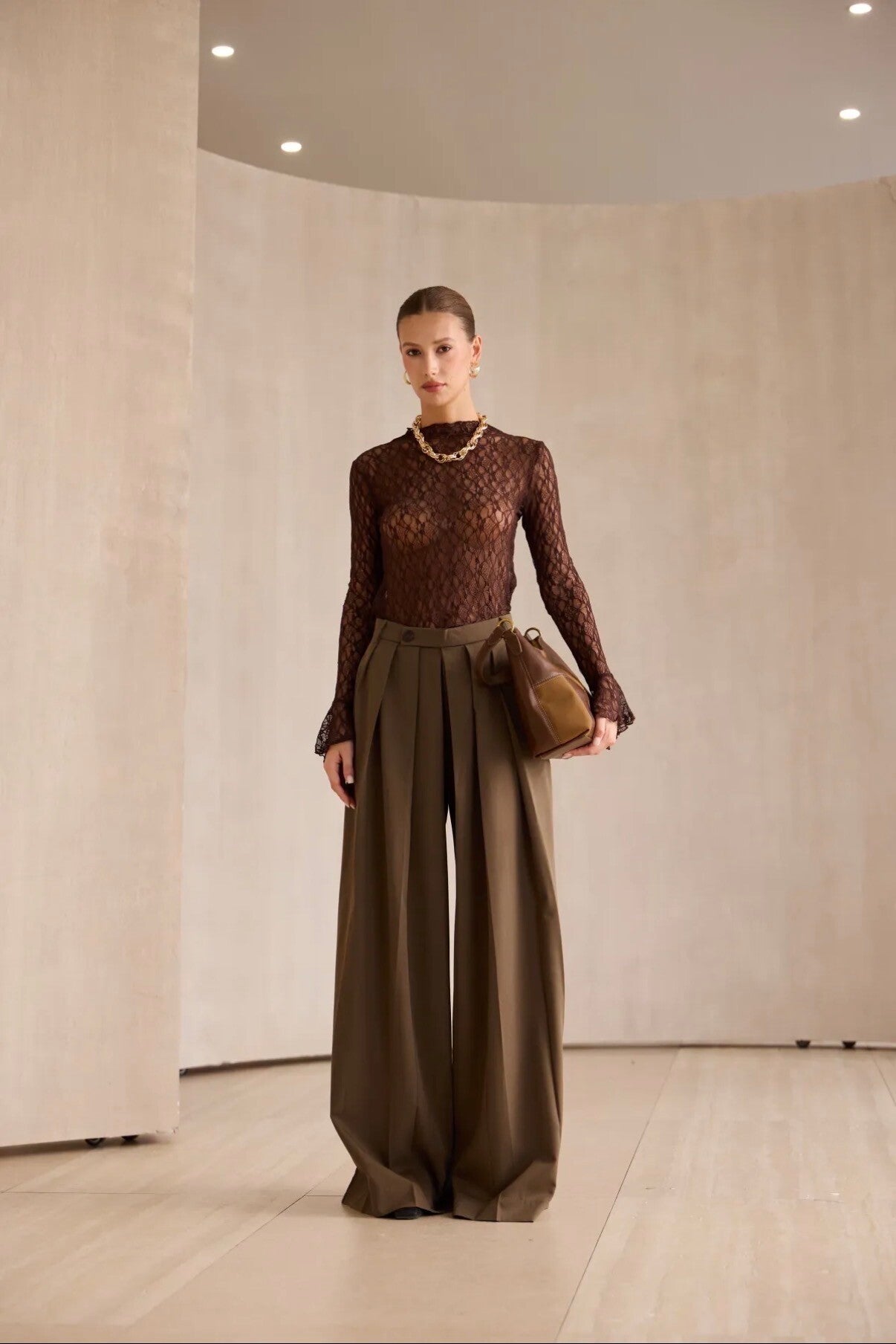 Kanten longsleeve top met wijde mouwtjes. Perfect om onder een trui of blazer te dragen! De top is doorschijnend en erg stretchy.